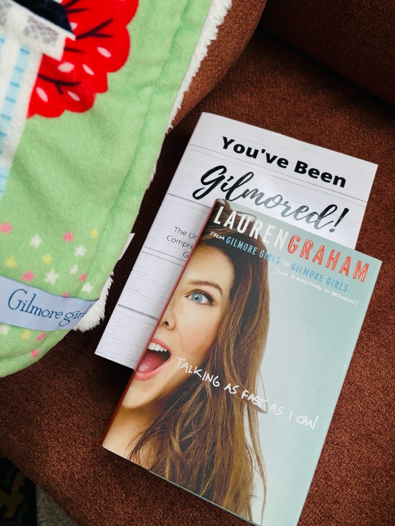 A cozy Gilmore moment — my copy of Talking as Fast as I Can and the sweetest fan gift from Lauri and Betsy. #YouveBeenGilmored